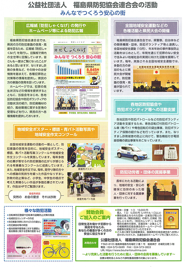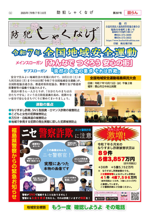 | 14 | 10月中旬 | 令和6年全国地域安全運動福島県民大会 | 郡山市:郡山市立中央公民館 |