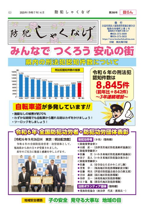 活動概要 ホーム > 活動概要 > 3. 防犯しゃくなげ 3. 防犯しゃくなげ 防犯しゃくなげ 第397号 (令和7年10月号) 防犯しゃくなげ 第396号 (令和7年4月号) 防犯しゃくなげ 第395号 (令和6年10月号) 過去の防犯しゃくなげはこちら